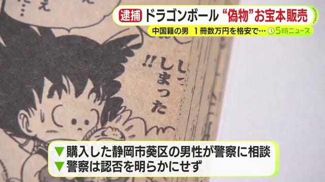 A 33-year-old Chinese national working as a physical therapist in Mito City has been arrested by Shizuoka police on suspicion of violating trademark law. Authorities say the man sold two counterfeit first edition volumes of the Dragon Ball manga through a flea market app between March and April of this year.