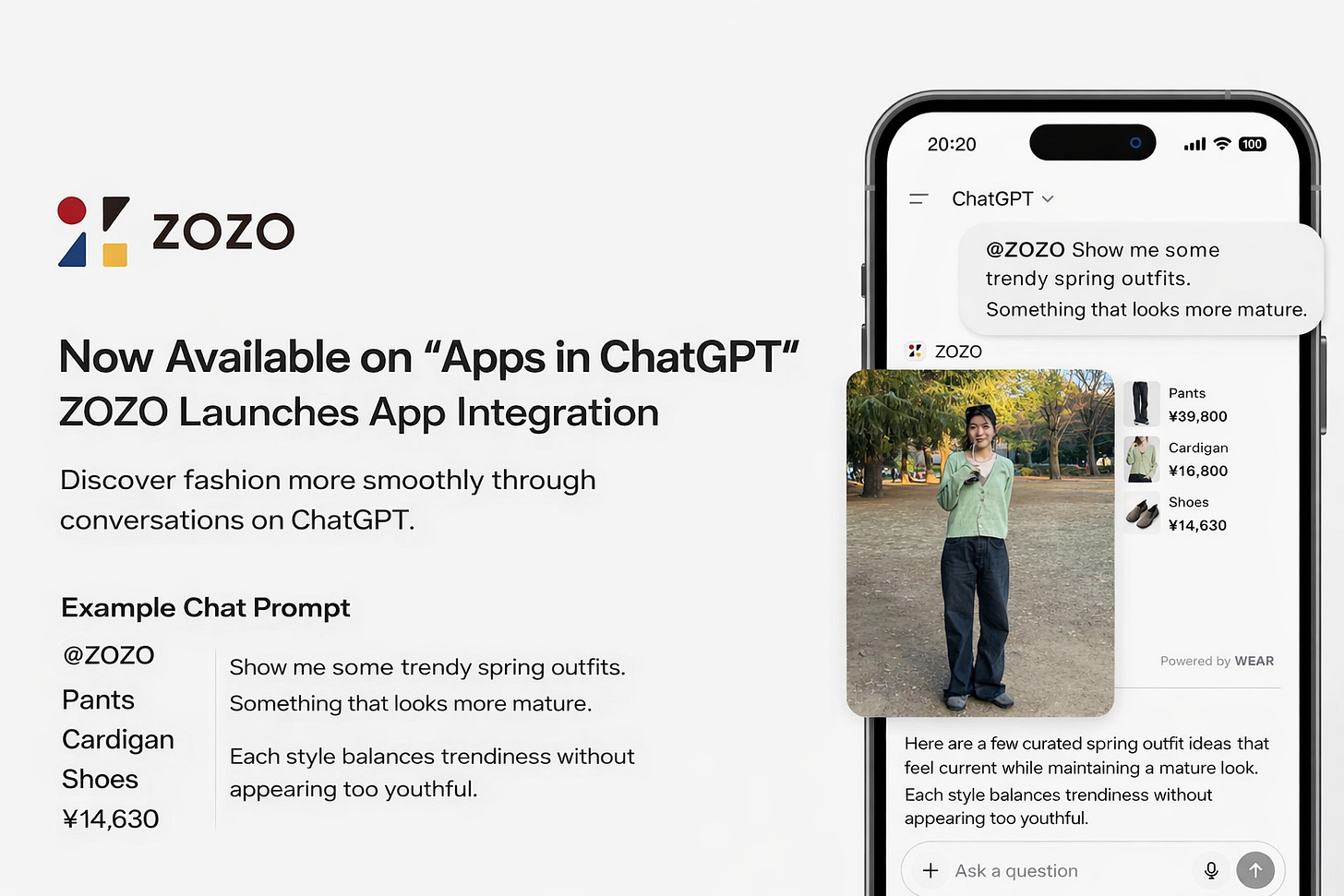 To use the service, ChatGPT users search for “ZOZO” in the ChatGPT app directory and follow the on-screen instructions to link the service. Once connected, users can type “@ZOZO” at the beginning of a message to activate the feature and request outfit ideas or clothing recommendations.