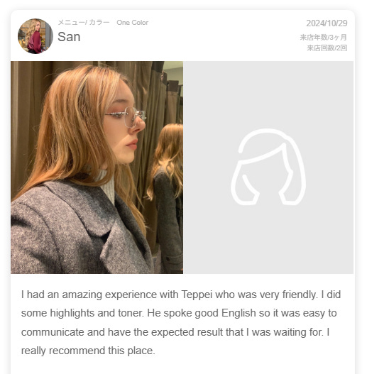 According to Teppei, the two biggest factors are price and quality. Japanese hairstylists are widely respected around the world for their technical training, and Japanese salons have operated in major cities such as New York, London, and Paris for years. These businesses have built loyal followings, but the cost of services abroad can be extremely high. “For example, if you get a cut and balayage at a Japanese salon in New York, the total including tips can be around ¥100,000 to ¥150,000, which is roughly $670 to $1,000,” Teppei said. “Even famous non-Japanese salons charge similar prices. In Japan, you can receive the same or even higher level of quality for under ¥50,000, about $335. For someone living in New York, that feels less than half the price.” The weak yen has also helped fuel the trend. For many travelers, salon services in Japan feel affordable even when travel costs are considered. Teppei says he regularly receives direct messages from prospective customers months in advance asking to reserve appointments during their trips.
