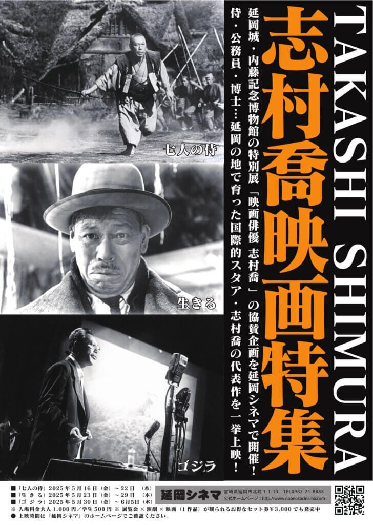 Held at the Nobeoka Castle Naito Memorial Museum through June 15, the exhibition features posters, photographs, scripts, props, and essays by Shimura. It builds on a 2015 exhibit from Tokyo’s National Film Archive and includes local items from his time in Nobeoka. Admission is 500 yen for adults, with reduced prices for students and free entry for children. Related events include screenings of Seven Samurai, Ikiru, and Gojira, a May 25 talk by film experts, and a June 7 stage play titled The Man Entrusted with Light, which explores Shimura’s life and legacy.