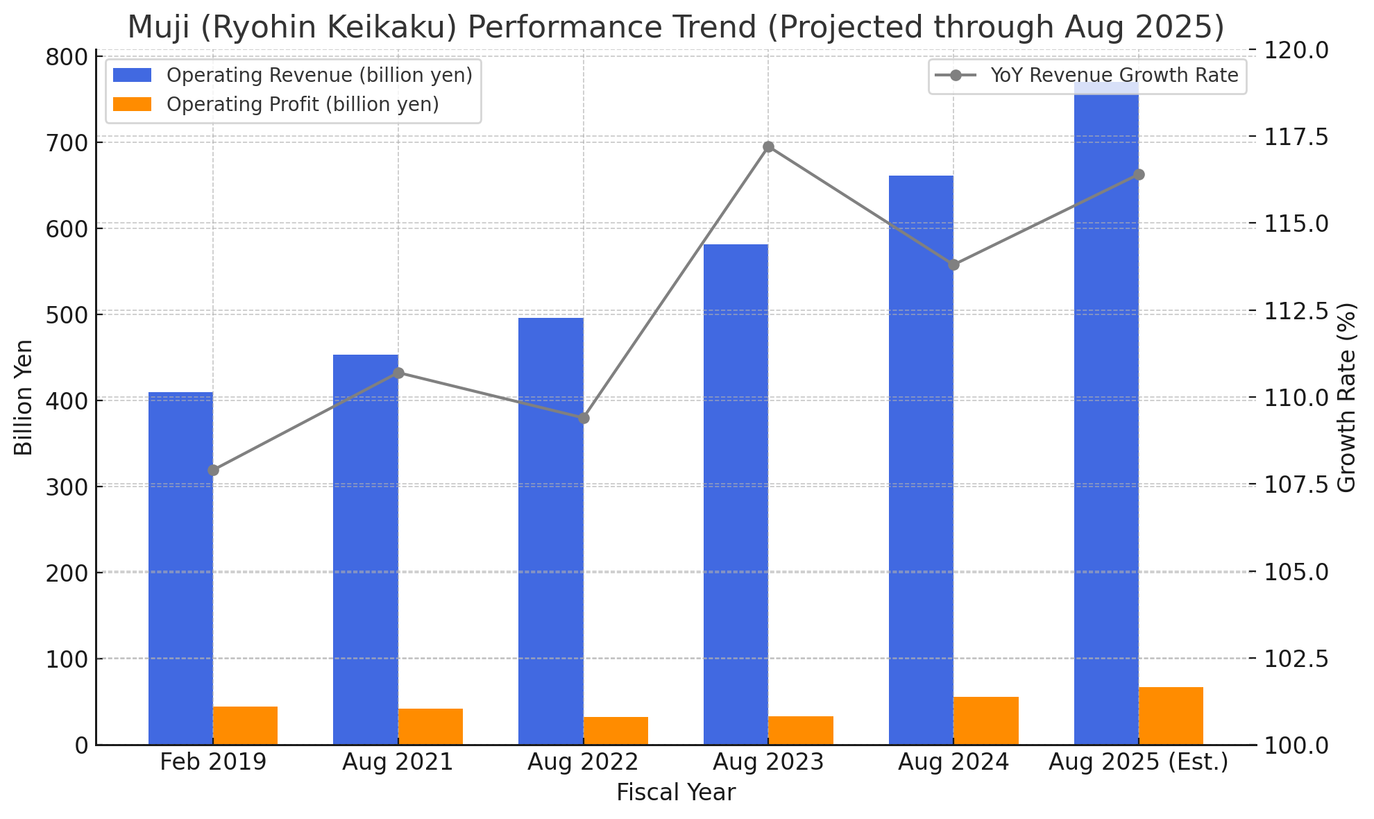 This isn’t just anecdotal. Muji’s parent company, Ryohin Keikaku, hit an all-time high stock price on May 30, 2025. For the fiscal year ending August 2025, Muji expects sales of 770 billion yen (approx. $4.9 billion), an increase of 160 billion yen (approx. $1 billion) over earlier forecasts. Operating profit is projected at 67 billion yen (approx. $430 million), up 19%, with net profit at 45.5 billion yen (approx. $290 million), a 9% increase.